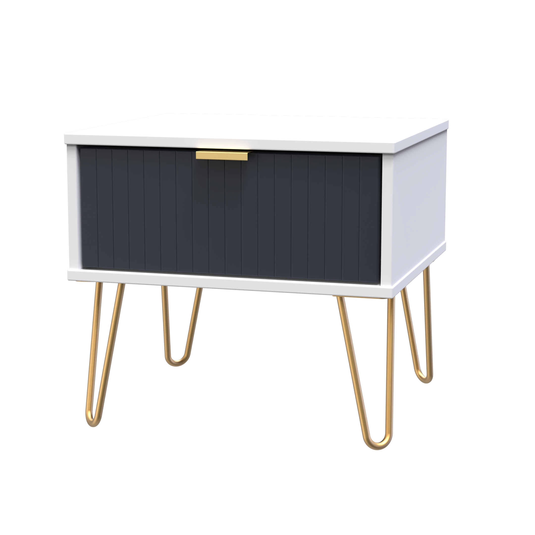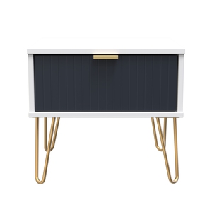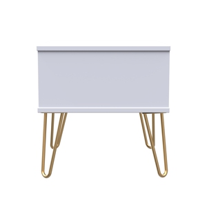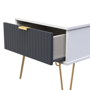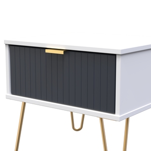 This single drawer low level bedside cabinet is practical and stylish. Perfect for any bedside or as a free standing storage unit. A modern and distinctive range. Named for the unique "Linear" patten of the drawer and door fronts. Also features Gold Metal Handles and Gold Hairpin Legs. Comes in a wide range of colours including eye cathching two tone colour combinations. All our furniture is made in the United Kingdom, to the highest quality. It is delivered direct to your location of choice by one of our two man delivery teams, and comes fully assembled - Please Note that any handles or legs may be removed durning transit to avoid the risk of damage.