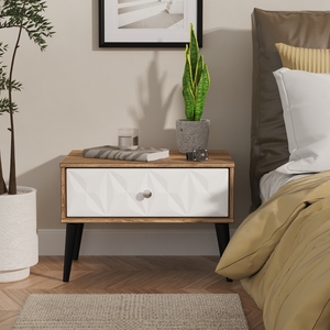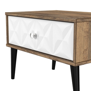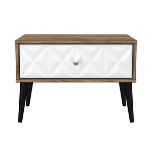 This single drawer bedside cabinet is wider than normal for added practicality. Perfect for any bedside or as a free standing storage unit. A modern and distinctive range. Named for the unique "Pixel" patten of the drawer and door fronts. Also features Black Metal Handles and Black Hairpin Legs. Comes in a wide range of colours including eye cathching two tone colour combinations. All our furniture is made in the United Kingdom, to the highest quality. It is delivered direct to your location of choice by one of our two man delivery teams, and comes fully assembled (although legs may be removed to prevent damage in transit).