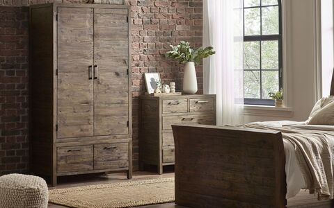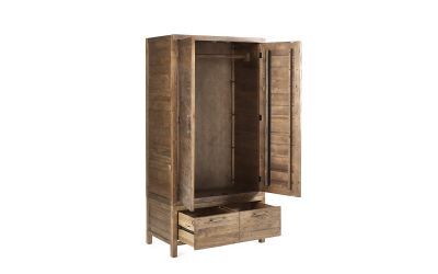 Heritage is constructed using reclaimed and recycled wood - making each piece unique and distinct. The Heritage 2 Door 1 Drawer Wardrobe has a distressed finish and is combined with industrial style metal handles that complete the look. The original imperfections are what make these pieces so unique and provide a distinct character in your bedroom space. With the additional drawer, this wardrobe not only looks good, but provides the storage space you need. See the wide ranging Heritage Collection for the perfect matching pieces.