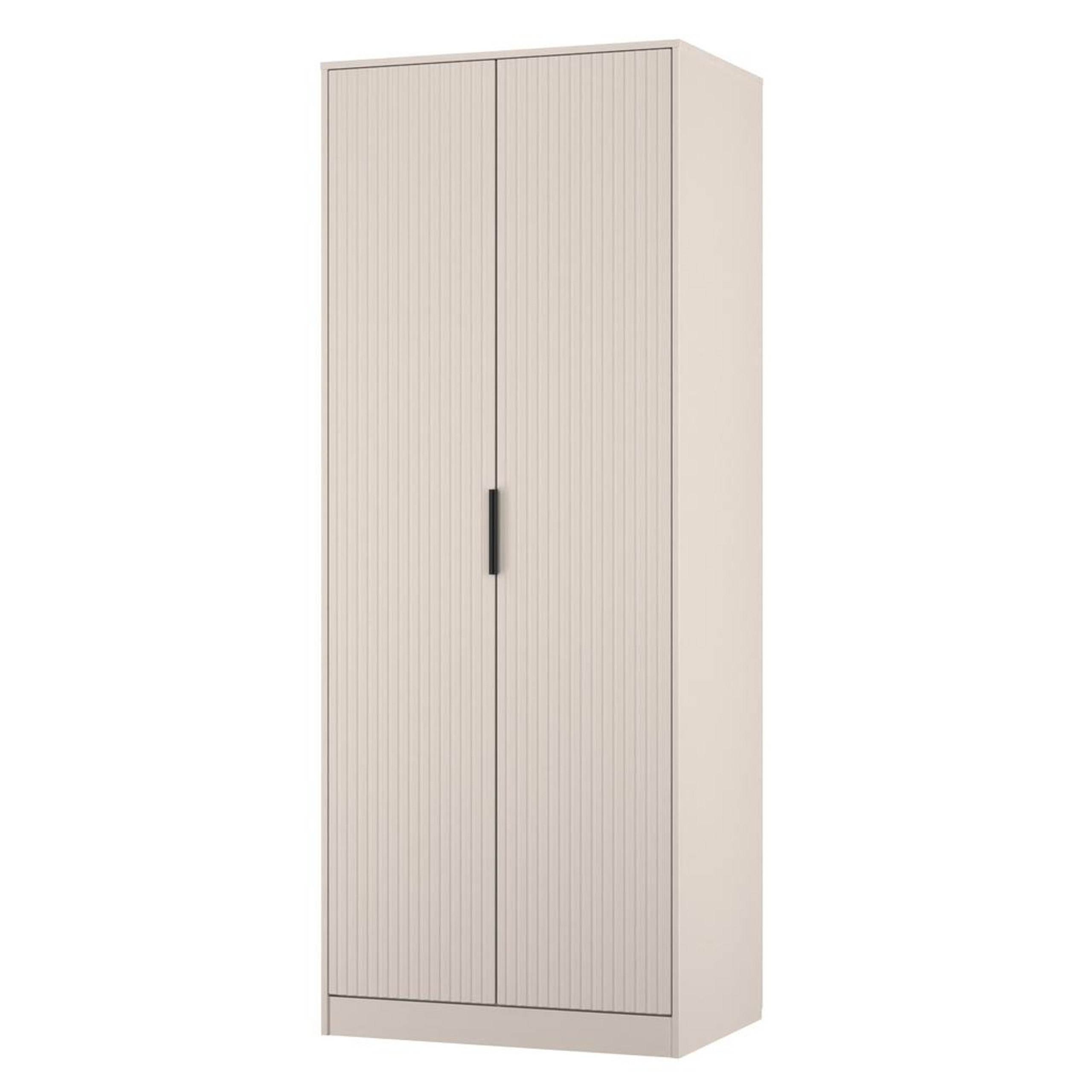 This tall double door wardrobe is perfect for any bedroom. A new stand out range, named for the new deep cut "fluted" grove patten of the drawer and door fronts. Featuring black metal handles and black sleigh legs. A striking and individual range that is perfect for the modern home. All our furniture is made in the United Kingdom, to the highest quality using responsibly sourced materials. It is delivered direct to your location of choice by one of our two man delivery teams, and comes fully assembled (although items with legs will have those legs removed during transit to avoid damage).