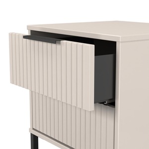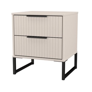 This compact 2 drawer bedside cabinet is practical and stylish. Perfect for any bedside or as a free standing storage unit. A new stand out range, named for the new deep cut "fluted" grove patten of the drawer and door fronts. Featuring black metal handles and black sleigh legs. A striking and individual range that is perfect for the modern home. All our furniture is made in the United Kingdom, to the highest quality using responsibly sourced materials. It is delivered direct to your location of choice by one of our two man delivery teams, and comes fully assembled (although items with legs will have those legs removed during transit to avoid damage).