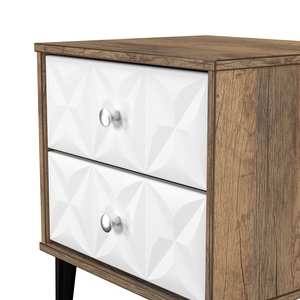 This 2 drawer bedside cabinet is practical and stylish. Perfect for any bedside or as a free standing storage unit. A modern and distinctive range. Named for the unique "Pixel" patten of the drawer and door fronts. Also features Black Metal Handles and Black Hairpin Legs. Comes in a wide range of colours including eye cathching two tone colour combinations. All our furniture is made in the United Kingdom, to the highest quality. It is delivered direct to your location of choice by one of our two man delivery teams, and comes fully assembled (although legs may be removed to prevent damage in transit).