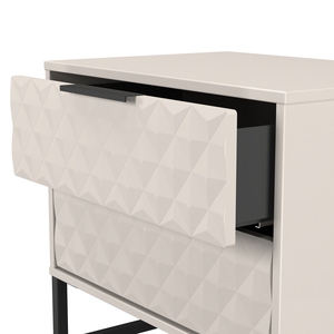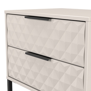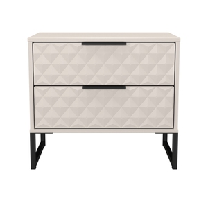 This 2 drawer bedside cabinet is wider than normal for added practicality. Perfect for any bedside or as a free standing storage unit. A modern and distinctive range. Named for the unique "Harlequin" patten of the drawer and door fronts. Also features Black Metal Handles and Black Hairpin Legs. Comes in a wide range of colours including eye cathching two tone colour combinations. All our furniture is made in the United Kingdom, to the highest quality using responsibly sourced materials. It is delivered direct to your location of choice by one of our two man delivery teams, and comes fully assembled (although items with legs will have those legs removed during transit to avoid damage).