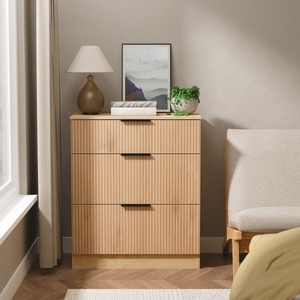 Introducing Java: a fusion of rustic charm and modern flair for your bedroom. Each piece features slatted oak effect fronts, adding warmth and character to your space. The matte finish carcasses offer durability and a sleek look that fits any contemporary style.