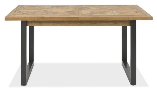 Indus is a striking design combining saw cut oak marquetry tops with a 'peppercorn' finished wire brushed oak veneered frame and a welded black powder coated metal base, giving it an on trend industrial edge. Each of the hand-crafted pattern tops are wire brushed and distressed to give a rustic look and tactile feel, making the most of the beautiful and varied grain of oak. Choose from generously proportioned oak upholstered chairs in four velvet options or a mottled grey fabric or cantilever chairs that feature this same fabric in a bold square pattern stitch detail with a handle in the back and superior glides on the base for ease of manoeuvre. BLUM soft closing hidden drawers within the sideboard cabinets add that extra refinement to the range in what will create a stunning focal point in any dining room.