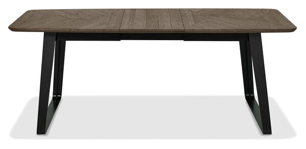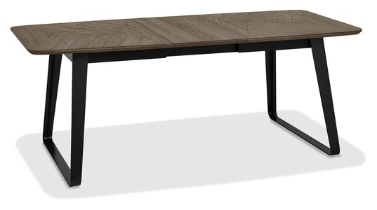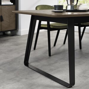 With a modernised retro look, Emerson features striking patterns of saw cut weathered oak tops & facias that are showcased against wire brushed peppercorn finished frames and a welded black powder coated metal base. Each of the hand-crafted pattern tops are wire brushed and distressed to give a rustic look and tactile feel, making the most of the beautiful and varied grain. Soft form barrel shaped table tops and moulded curved seats and back on the chairs pair contemporary craftmanship with utmost comfort, with the choice of rich velvets and mottled aged fabrics making a statement in any home. Shaped metal handles that mirror the geometric weathered oak patterns and hidden soft close drawers in the sideboards complete this luxuriously sophisticated and dynamic range.