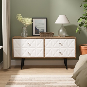 A large 4 drawer bed box. A Perfect storage solution for any room (not just the end of your bed). Could also be used as a low level TV/Media stand. A modern and distinctive range. Named for the unique "Pixel" patten of the drawer and door fronts. Also features Black Metal Handles and Black Hairpin Legs. Comes in a wide range of colours including eye cathching two tone colour combinations. All our furniture is made in the United Kingdom, to the highest quality. It is delivered direct to your location of choice by one of our two man delivery teams, and comes fully assembled (although legs may be removed to prevent damage in transit).