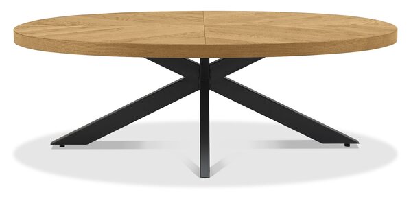 The striking saw cut rustic oak marquetry tops on the thick table tops and cabinet doors contrast beautifully against the large welded peppercorn powder coated metal bases, creating a range that successfully blends intricate craftsmanship and indulgently warm tones with an on trend industrial aesthetic.