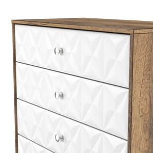 This wide 5 drawer chest of drawers is practical and stylish. Perfect for any home as a free standing storage unit. A modern and distinctive range. Named for the unique "Pixel" patten of the drawer and door fronts. Also features Black Metal Handles and Black Hairpin Legs. Comes in a wide range of colours including eye cathching two tone colour combinations. All our furniture is made in the United Kingdom, to the highest quality. It is delivered direct to your location of choice by one of our two man delivery teams, and comes fully assembled (although legs may be removed to prevent damage in transit).