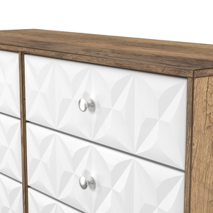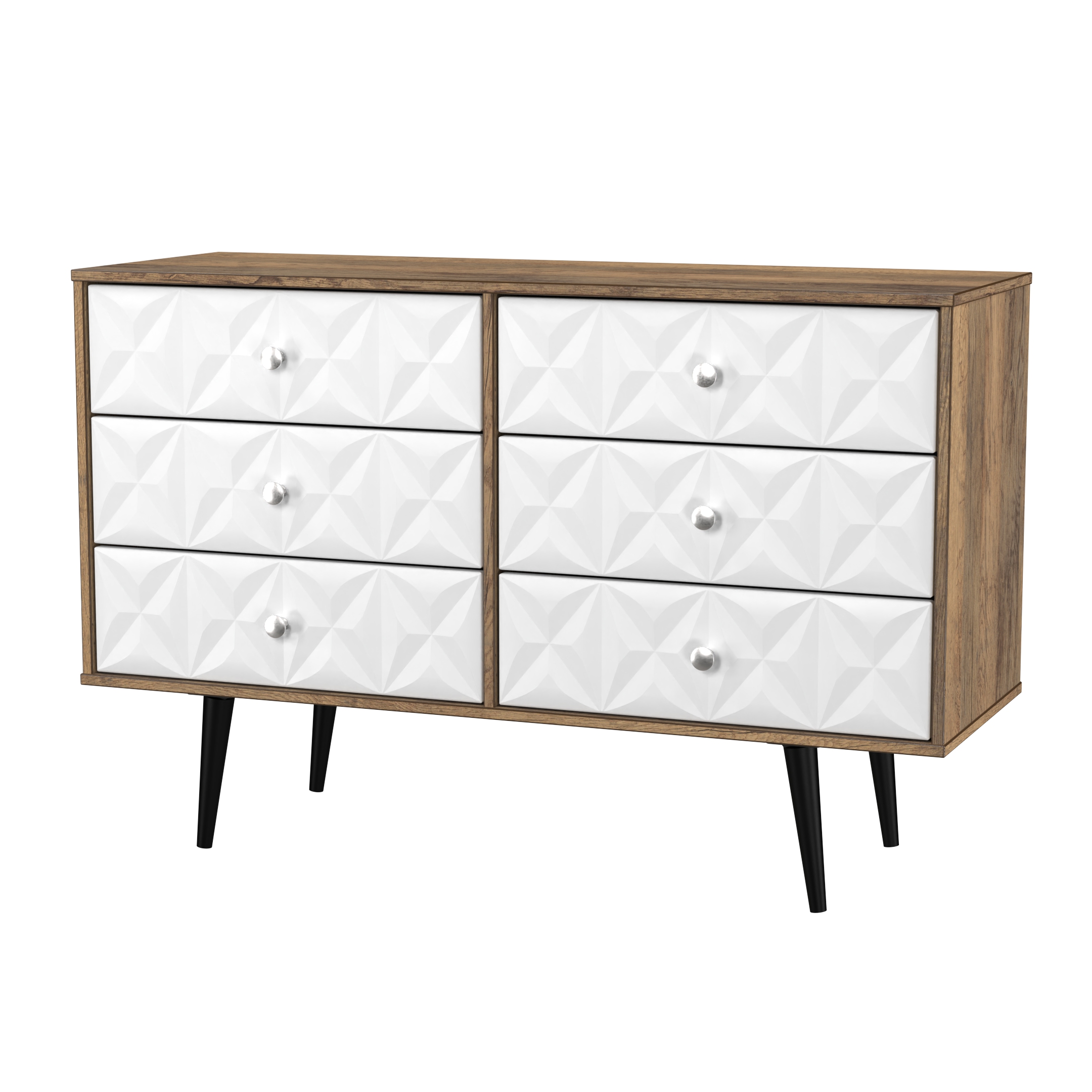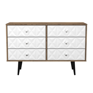 This double width 6 drawer chest of drawers is practical and stylish. Perfect for any home as a free standing storage unit. A modern and distinctive range. Named for the unique "Pixel" patten of the drawer and door fronts. Also features Black Metal Handles and Black Hairpin Legs. Comes in a wide range of colours including eye cathching two tone colour combinations. All our furniture is made in the United Kingdom, to the highest quality. It is delivered direct to your location of choice by one of our two man delivery teams, and comes fully assembled (although legs may be removed to prevent damage in transit).