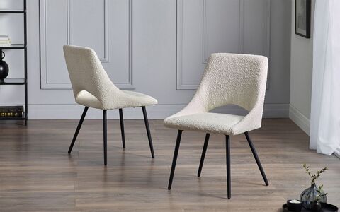 With a modern design, the Iris Boucle Dining Chair is wrapped in beautiful ivory boucle with black legs - giving a retro vibe that is perfect to make your dining space look glamorous.