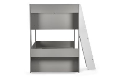 This gorgeous-designed, Parsec Bunk Bed is applicably constructed for convenience and durability. Featuring a sturdy taupe and white construction with a robust angled ladder including glow-in-dark steps and built-in shelving allowing you to store many books and toys within hand's reach. Making it an enchanting option for little ones.