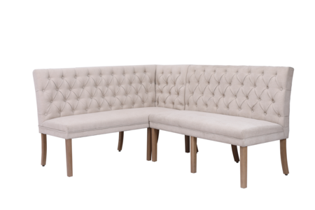 Features• 100% Polyester Fabric • Tufted fabric button back upholstered • curved high back for support• Oak legs• Can be part of a combined coner bench set