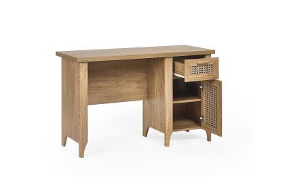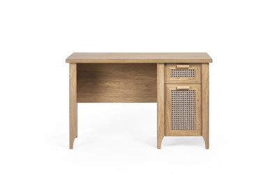 Showcasing a beautifully sleek design with a bohemian feel, the Sydney Desk offers exquisitely curved edging with gentle soft lines stunningly combined with a rattan effect front. Finished with a natural oak effect featuring one pull-out drawer and one cupboard providing the ideal storage space for stationary essentials. All around creating the perfect airy, warm feel within your home.