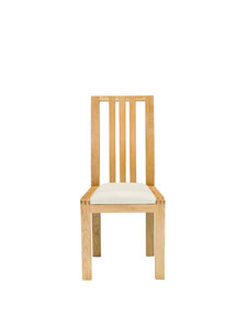 The curved profile of the Bosco dining chair back emphasises the solidity of the timber and provides added lumbar support. The chair seat is foam padded for added comfort and will be covered in cream fabric. The Bosco oak dining chair is finished in a clear matt lacquer to best show off the beauty of the oak. It also features Bosco curved finger joints on the corners of the dining chair and beautiful and distinctive large finger joint details across the top of the chair.