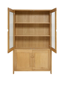 This contemporary oak cabinet offers two separate storage sections. The large upper glass cabinet consists of two adjustable storage shelves, offering plentiful space for your glassware. At the base of the cabinet there is another ample sized cupboard divided vertically into two with each side having an adjustable storage shelf. Recessed handles, which are both wonderfully tactile and simply elegant, compliment each of the cupboard doors. The oak cabinet also features curved finger joint detailing, a signature feature of the Bosco design. This display cabinet, like all tall pieces of furniture should be fixed to the wall for stability, appropriate fixtures and fittings are provided.