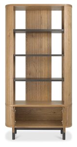 Blending rustic character with contemporary design, the Vega Rustic Oak range adds warmth and personality to the dining experience. Elliptical dining table tops, surfaced with hardwearing sawcut oak and finished in a nourishing oil finish, feature sturdy pedestal bases with tapered silhouettes and v-groove detailing, offering both durability and visual appeal. The range extends to versatile pedestal based occasional pieces, including an oval lamp and coffee table. Additionally, further choice is offered with drum style occasional designs with discreet storage behind hinged doors. Cabinetry with soft curved ends sit on contrasting peppercorn bases with refined scalloped legs. Concealed drawers in the sideboards provide practical storage, while moulded ply-back chairs and barstools, upholstered in ivory bonded leather or fine-weave grey fabric, deliver comfort with modern elegance.