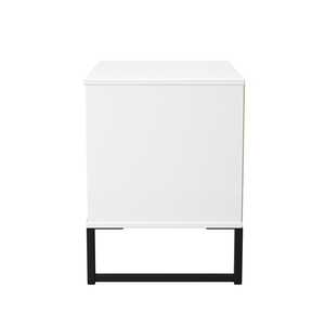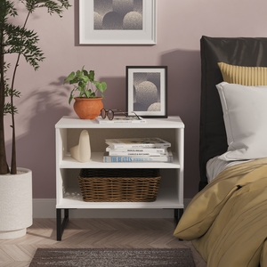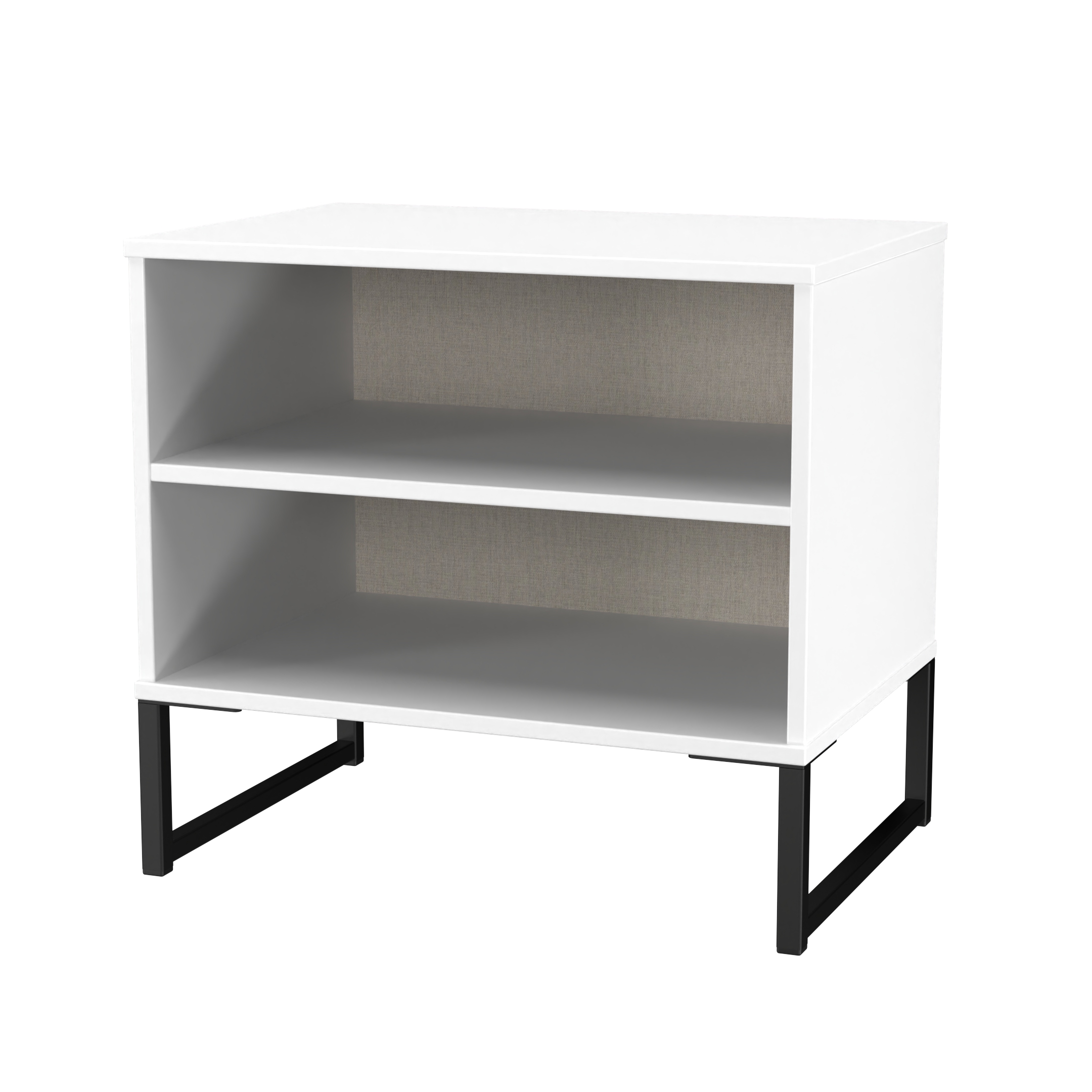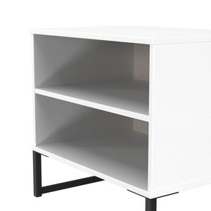 This modern storage cabinet features 2 large open storage compartments. A truly unique style that will be the highlight of any bedroom. This furniture set is popular for its Scandinavian style and industrial feel. Constructed from sturdy materials with metal handles and frame legs. Elevate your space with this range, featuring plenty of storage, so it's incredibly practical for keeping rooms clutter free and tidy. All our furniture is made in the United Kingdom, to the highest quality. It is delivered direct to your location of choice by one of our two man delivery teams, and comes fully assembled (although legs may be removed to prevent damage in transit).