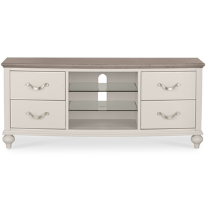With drama and sophistication in abundance, Montreux boasts beautiful form by way of serpentine framed tops, gently bow-fronted cabinet & classically styled turned legs. Bespoke handles, intricate oak marquetry tops and large roll back upholstered chairs all add to the uncompromising design detail which together with the combination of striking grey washed oak tops contrasting with soft grey pigment frames will ensure this range makes a striking statement in any home. Quality touches such as soft closing drawers for the cabinet and reciprocal extension runners for the dining tables epitomise the best of contemporary styling and everyday use.