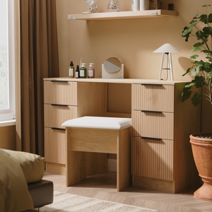 Introducing Java: a fusion of rustic charm and modern flair for your bedroom. Each piece features slatted oak effect fronts, adding warmth and character to your space. The matte finish carcasses offer durability and a sleek look that fits any contemporary style.