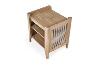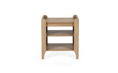 Showcasing a beautifully sleek design with a bohemian feel, the Sydney Lamp Table offers exquisitely curved edging accompanied by a raised lip around the edge providing a practical addition, stunningly combined with a rattan effect front. Finished with a natural oak effect featuring a removable shelf allowing you to store key essentials both on the top and bottom of the table. All around creating the perfect airy, warm feel within your home.