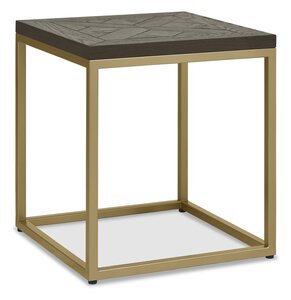 Athena is a striking design combining saw cut marquetry tops in a warm fumed finish with dark rich ‘peppercorn’ stained wire brushed oak veneered frames and welded metal bases in a satin brass finish. Each of the hand-crafted pattern tops are wire brushed and distressed to give a rustic look and tactile feel, making the most of the beautiful and varied grain of oak.