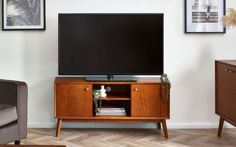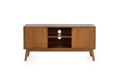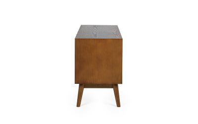 A gorgeous retro-inspired style, the Lowry Media Unit is constructed from an exquisite cherry ash wood veneer with beautifully tapered legs. Featuring 2 soft-touch cupboard doors with interior shelving. Offering the perfect storage space for consoles. Complemented by golden framed knobs, providing the perfect timeless staple to any occasional space.
