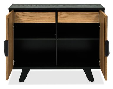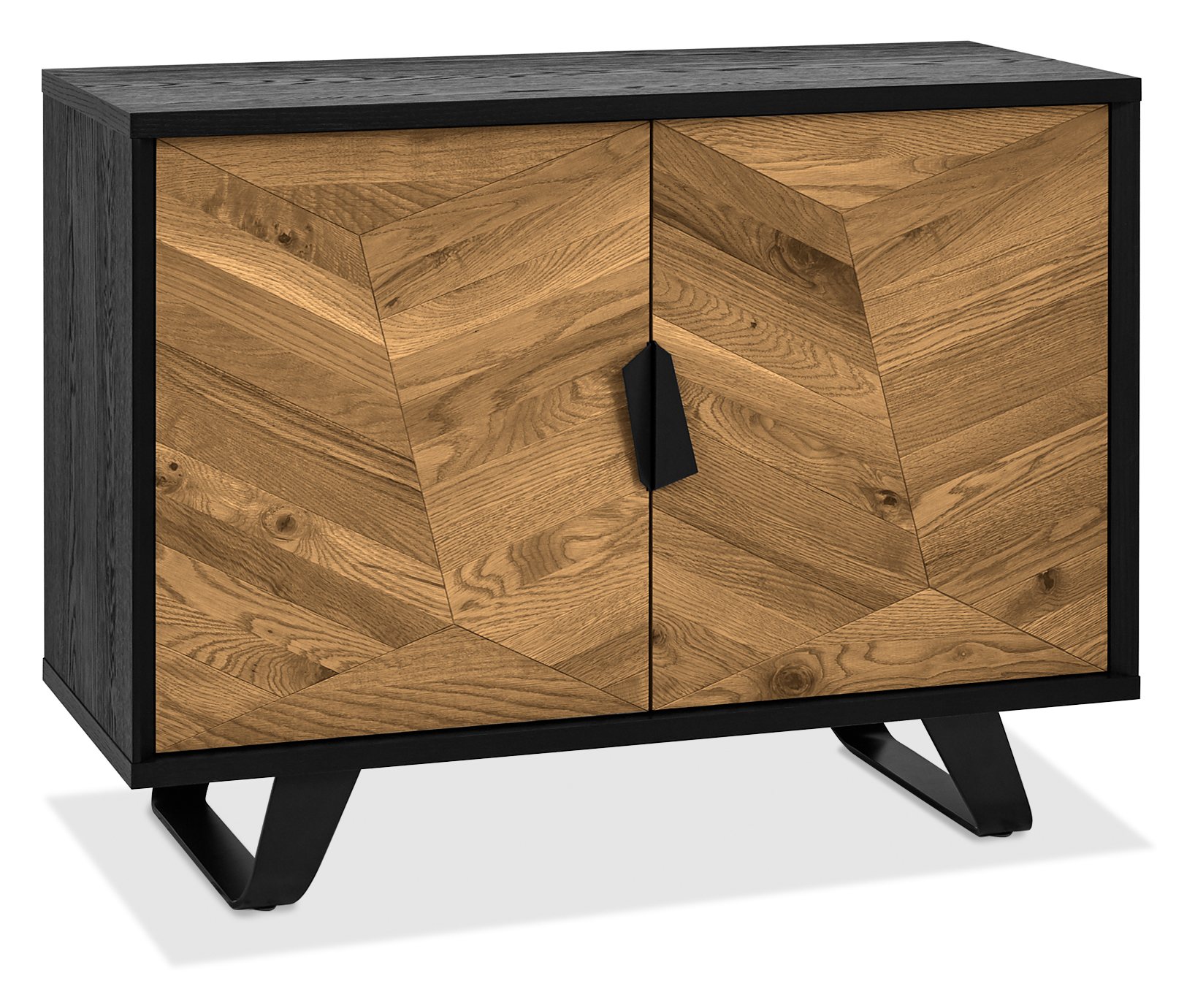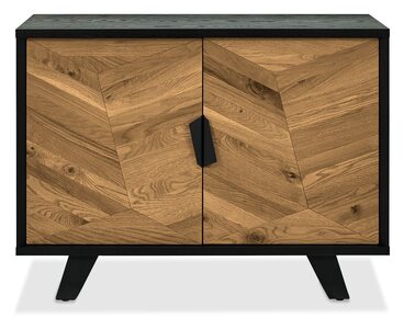 With a modernised retro look, Emerson features striking patterns of saw cut rustic oak tops & facias that are showcased against wire brushed peppercorn finished frames and a welded black powder coated metal base. Each of the hand-crafted pattern tops are wire brushed and distressed to give a rustic look and tactile feel, making the most of the beautiful and varied grain. Soft form barrel shaped table tops and moulded curved seats and back on the chairs pair contemporary craftmanship with utmost comfort, with the choice of rich velvets and mottled aged fabrics making a statement in any home. Shaped metal handles that mirror the geometric oak patterns and hidden soft close drawers in the sideboards complete this luxuriously sophisticated and dynamic range.