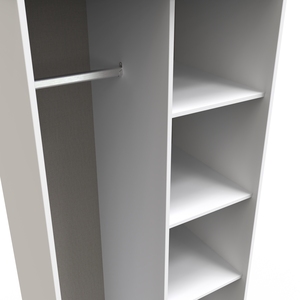 This full height open wardrobe features 5 storage shelves and a full height clothes hanging compartment. This furniture set is popular for its Scandinavian style and industrial feel. Constructed from sturdy materials with metal handles and frame legs. Elevate your space with this range, featuring plenty of storage, so it's incredibly practical for keeping rooms clutter free and tidy. All our furniture is made in the United Kingdom, to the highest quality. It is delivered direct to your location of choice by one of our two man delivery teams, and comes fully assembled (although legs may be removed to prevent damage in transit).