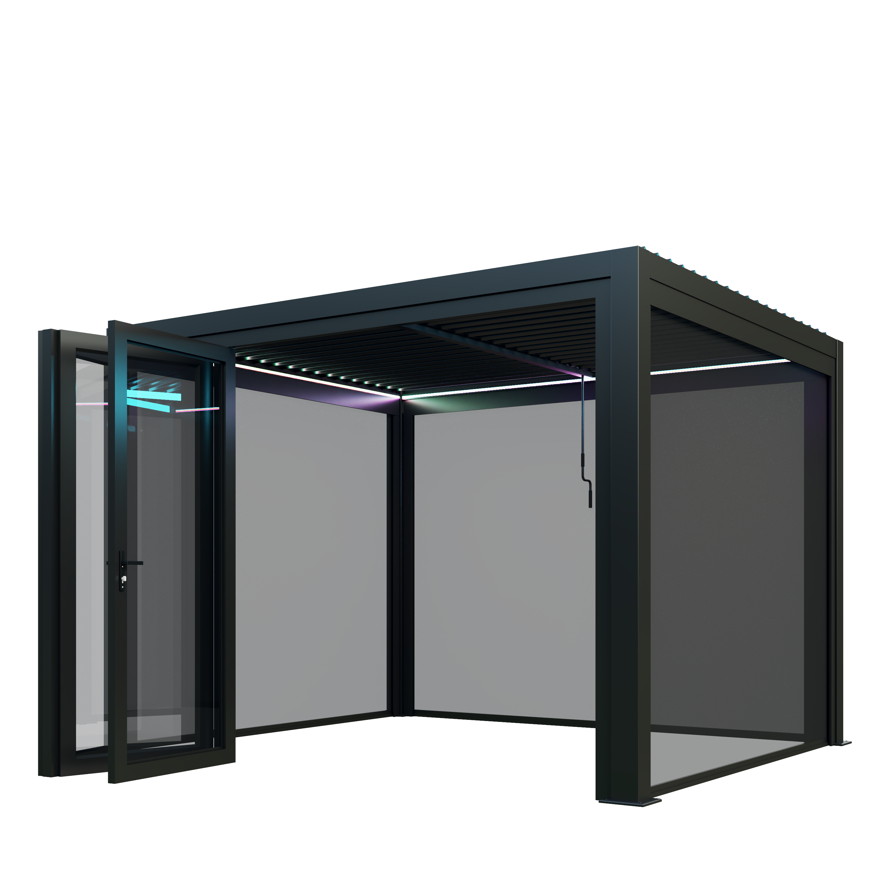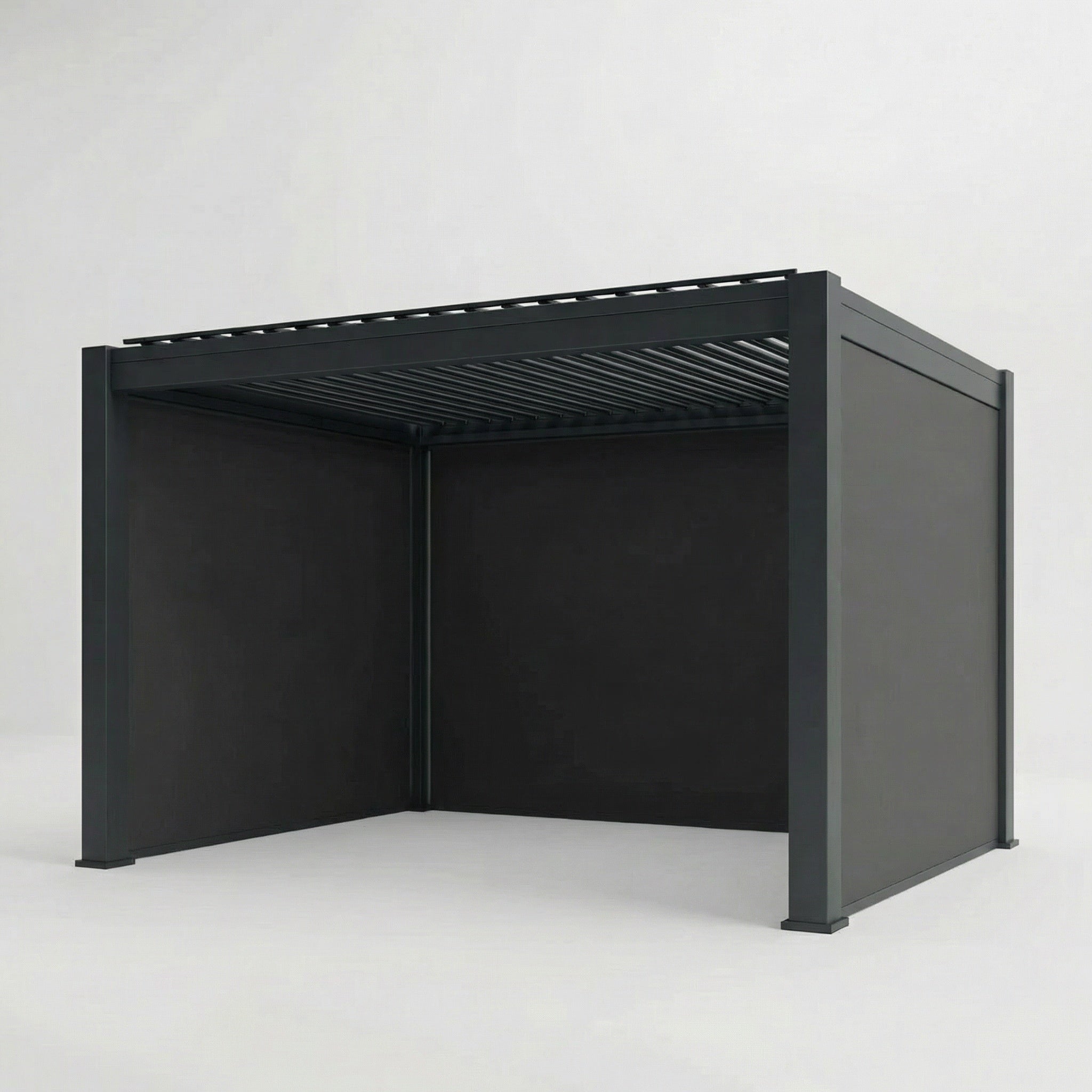 Unlike standard pergolas on the market, Saturn features a double-layered tilting louvre roof system and a uniquely reinforced structural design that increases overall rigidity and wind resistance.