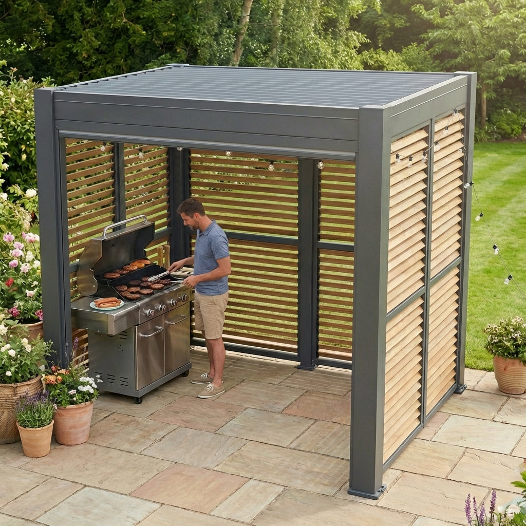 Saturn Aluminium Pergola – Heavy Duty Manual Louvre Roof Pergola UK