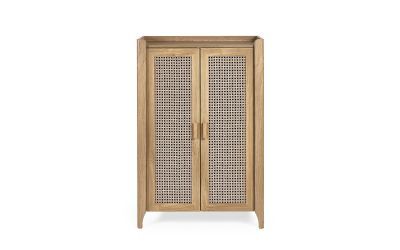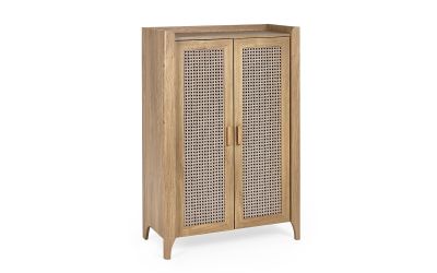 Showcasing a beautifully sleek design with a bohemian feel, the Sydney Shoe Cupboard offers exquisitely curved edging accompanied by a raised lip around the edge providing a practical addition, stunningly combined with a rattan effect front. Finished with a natural oak effect featuring five shelves allowing you to hide your shoes away discretely when guests are over. All around creating the perfect airy, warm feel within your home.