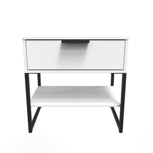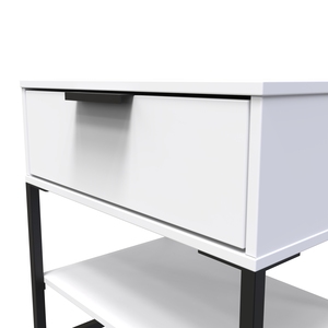 This modern storage cabinet features a large storage drawer and lower shelf. A truly unique style that will be the highlight of any bedroom. This furniture set is popular for its Scandinavian style and industrial feel. Constructed from sturdy materials with metal handles and frame legs. Elevate your space with this range, featuring plenty of storage, so it's incredibly practical for keeping rooms clutter free and tidy. All our furniture is made in the United Kingdom, to the highest quality. It is delivered direct to your location of choice by one of our two man delivery teams, and comes fully assembled (although legs may be removed to prevent damage in transit).