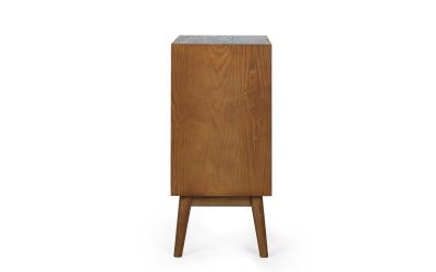 A gorgeous retro-inspired style, the Lowry Small Sideboard is constructed from an exquisite cherry ash wood veneer with beautifully tapered legs. Featuring soft-touch cupboard doors and interior shelving, ideal for storing necessities. Complemented by gold framed knobs, providing the perfect timeless staple to any occasional space.