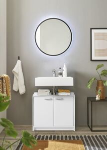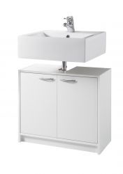 Discover the perfect blend of style and functionality with the Smash Under Sink Cabinet. Finished in a sleek white, this cabinet features two spacious cupboards, each equipped with generous shelves to keep your bathroom essentials organised and easily accessible. The elegant silver circular-shaped handles add a modern touch, elevating your space while ensuring everything is tucked away neatly.