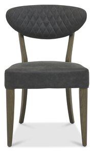 Ellipse Fumed Oak showcases bold design with a combination of the natural lines of the elliptical and circular tables, paired with the geometrical & linear shapes of the cabinet, to create a compelling and slightly eclectic look. The striking saw cut fumed rustic oak marquetry tops on the thick table tops and cabinet doors contrast beautifully against the large welded peppercorn powder coated metal bases, creating a range that successfully blends intricate craftsmanship and indulgently warm tones with an on trend industrial aesthetic. Each of these hand-crafted pattern tops and laminated fumed rustic oak cabinet frames are wire brushed and distressed to give a rustic look and tactile feel, making the most of the beautiful and varied grain of oak. Generously proportioned dining chairs, styled with diamond stitch upholstery in a choice of luxurious dark grey fabric and old west vintage bonded leather, feature plush padded seats, gently flared backs and elegantly tapering legs, imbuing comfort and indulgence. Superior Blum soft close drawer runners add that final quality detail to a range that is sure to be a focal point in any space.