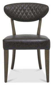 Ellipse Fumed Oak showcases bold design with a combination of the natural lines of the elliptical and circular tables, paired with the geometrical & linear shapes of the cabinet, to create a compelling and slightly eclectic look. The striking saw cut fumed rustic oak marquetry tops on the thick table tops and cabinet doors contrast beautifully against the large welded peppercorn powder coated metal bases, creating a range that successfully blends intricate craftsmanship and indulgently warm tones with an on trend industrial aesthetic. Each of these hand-crafted pattern tops and laminated fumed rustic oak cabinet frames are wire brushed and distressed to give a rustic look and tactile feel, making the most of the beautiful and varied grain of oak. Generously proportioned dining chairs, styled with diamond stitch upholstery in a choice of luxurious dark grey fabric and old west vintage bonded leather, feature plush padded seats, gently flared backs and elegantly tapering legs, imbuing comfort and indulgence. Superior Blum soft close drawer runners add that final quality detail to a range that is sure to be a focal point in any space.
