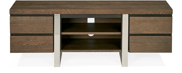 Tivoli is a chic and on-trend mixed media dining range incorporating a bold and striking mix of dark oiled oak with ebonised accent detailing set off against satin nickel metal frames. Cantilever chairs with highly polished frames and precision cut joints using the latest metal plating technology are available in either a mottled black faux leather or plush velvets in an option of eye-catching colours. Design features including end grain detailing, planking effect on table tops and cabinet facia and a distinctive modular open display unit combine with advanced constructional techniques and high end fittings, including Blum soft-close drawer runners, to create a compelling fashion statement combining functionality with premium build quality.