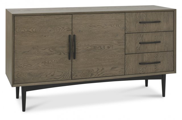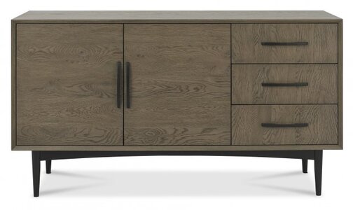 Taking inspiration from sophisticated mid-century styling through hints of both retro and Scandinavian design, Vintage is a fashionable range that features a varied blend of shapes and forms. Contrasting wire brushed weathered oak tops and carcasses with peppercorn painted base and legs are perfectly paired with a choice of upholstered chair styles in either a dark grey mottled fabric or an aged vintage bonded leather.