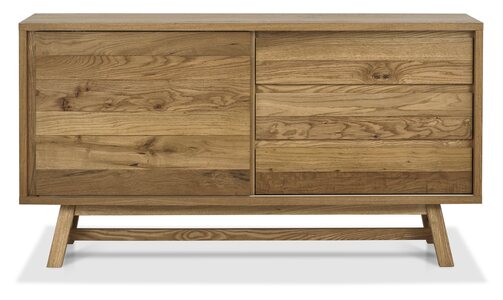 Camden combines traditional forms with a contemporary edge by way of gently curved “barrel shaped” table tops and cabinet facias. Wire-brushed and saw cut laminated oak table tops, combined with solid ash “A” frame legs make a real statement and the rich oiled finish will add warmth to any dining space.