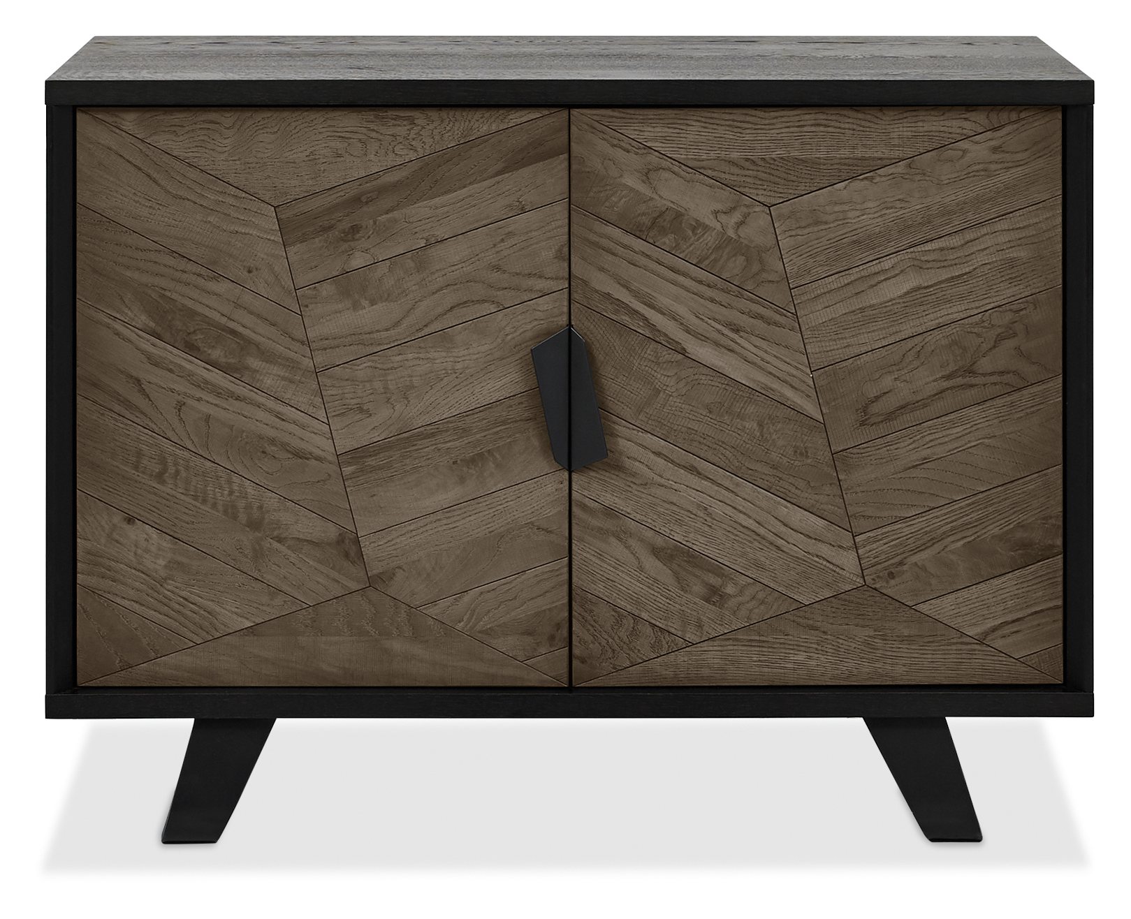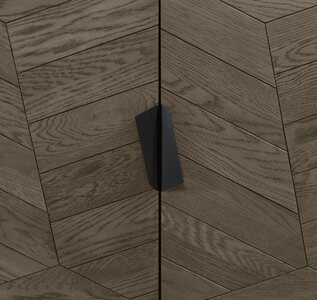 With a modernised retro look, Emerson features striking patterns of saw cut weathered oak tops & facias that are showcased against wire brushed peppercorn finished frames and a welded black powder coated metal base. Each of the hand-crafted pattern tops are wire brushed and distressed to give a rustic look and tactile feel, making the most of the beautiful and varied grain. Soft form barrel shaped table tops and moulded curved seats and back on the chairs pair contemporary craftmanship with utmost comfort, with the choice of rich velvets and mottled aged fabrics making a statement in any home. Shaped metal handles that mirror the geometric weathered oak patterns and hidden soft close drawers in the sideboards complete this luxuriously sophisticated and dynamic range.